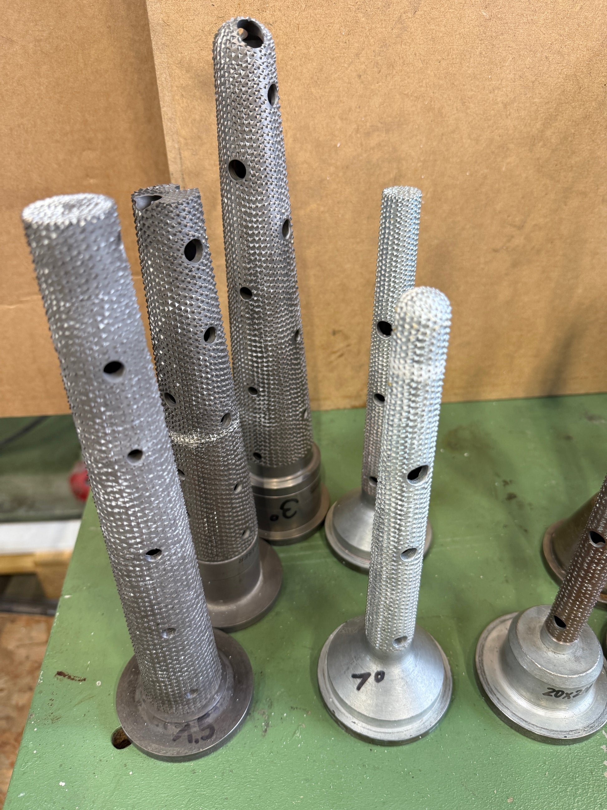 Wir verkaufen ein Konvolut gebrauchter Raspelhohlfräser mit Flansch 78/8 mm für Hohlwellenfräsmotoren, für die Styroporbearbeitung.